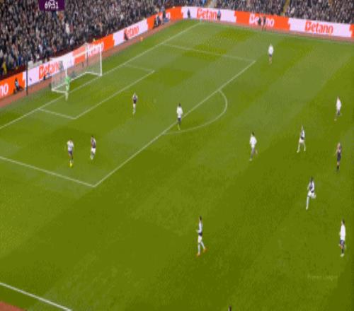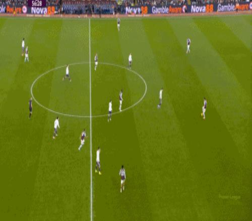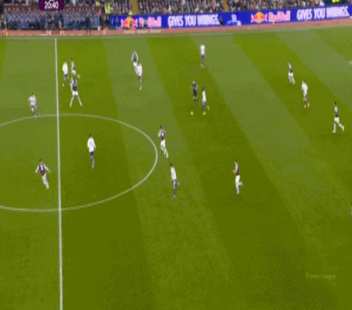 包括第二球也是一样,前戏依旧是维拉吸引曼联压迫,然后用长球连接前场,还是拉出空当之后,由麦金带出转移到弱侧的进攻: