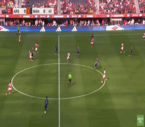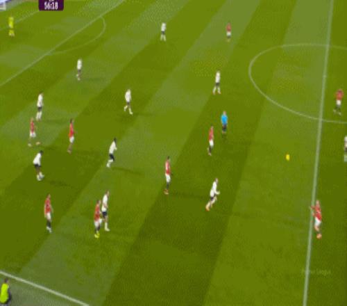 结果芒特没有顶住奥纳纳,麦金可是靠自己的手臂动作顶住了卢克-肖,然后直接斜长传找到了罗杰斯: