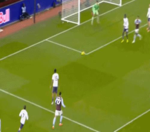 只不过这次的第一轮进攻没有成功,但在第二轮进攻里,蒂勒曼斯在达洛特并不严密的防守下送出传中,沃特金斯抢出前点,让球落到了罗杰斯的脚下,然后让第一球再重现一次: